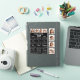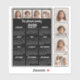 A calendar with 4 photos plus an additional 4 square photo stickers as a bonus. A simple black background with white type. For best results, crop photos into squares before uploading.