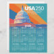Calendar with America's 250th Birthday Celebration Design in a colourful rendition of the Capital Dome. A very useful item for school or home office. This shows a full year view of all dates.