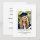A classic graduation announcement card featuring a custom photo and traditional typography. This elegant design features a minimalist layout and a timeless sense of style. Upload your own photo, and personalize the text with the graduate's name, parents' names, educational institution, qualification title, and graduation year. Printing colors: black and white, or customize the color to match your university, school, or college. Available as a printed card or a digital download. Explore the online collection for matching design templates!