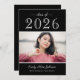 Announce your high school graduate in style with this simply elegant style photo graduation announcement card that features two senior photos of your beautiful grad with a classic black and white colour scheme - can be customised. The back of cards includes an invitation to a graduation party to celebrate the occasion.