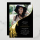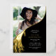 Let's celebrate your grad's big milestone with a modern gold foil graduation party invitation. Each invite features a classic black background, a photo of the grad, a graduation day cap topper tassel with the class year '2026', and a simple text template that’s easy to customise. Let family and friends know how much their presence at the special celebration means to you with these timeless cards that are sure to stand out.