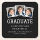 These graduation party coasters feature a collage of three custom square photos above the word "graduate" in sporty white typography on a black background. Add the graduate's name, school and class year below in sans serif font.