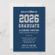 Celebrate your 2026 graduate with this modern, typography-forward graduation party invitation in navy blue with silver gray number styling. The clean layout features bold “2026” and “GRADUATE” lettering with space to personalize the graduate name, school, party details, and RSVP. A polished, easy-to-read design that works beautifully for high school or college celebrations. Great for graduation parties and open house gatherings.
