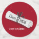 Class of 2026 white diploma with black ribbon and bow on red and white background.