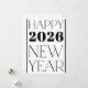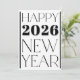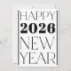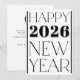 Bold typography, trendy modern 2026 Happy New Year simple black and white business corporate holiday card with custom logo, text message, and company name.