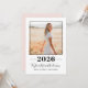 Stylish high school graduation announcement card and party invitation features a senior photo with black outlined frame, class year in bold text, and simple modern style wording that can be personalised with your graduate's name in script and high school. This two-sided card design includes an invitation to "Join us" for a graduation party on the back. The chic blush pink, black and white colour scheme can be customised to coordinate with the photo or party colours.
