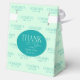 Celebrate your graduate's achievement in style with personalized favor boxes! Featuring a fresh mint green and teal design, these boxes showcase a repeating "Congrats" message that includes the graduate's name. The flap highlights your graduate's photo cropped inside an elegant grad frame, along with the class year. The back includes a heartfelt printed message: "Thank you for celebrating with us!" © Kimbellished, LLC