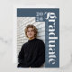 This steel blue 4 photo graduation announcement features a clean, modern layout with real silver foil accents. The customizable template allows you to personalize the final two digits of the class year, the graduate’s name, and school, and upload two photos. Adjustable letter spacing lets you fully justify the vertical name and school text for a precise, custom fit. The year and “graduate” are printed in genuine silver foil, while the name and school are digitally printed in white for crisp contrast. A streamlined graduation announcement designed for seniors who prefer a modern look with metallic detail. © Kimbellished, LLC