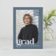 Celebrate a significant academic achievement with this modern, editorial-inspired graduation announcement that doubles as a stylish party invitation. The contemporary design features a modern slate blue background with cool icy blue typography and a clean, refined layout. Easily customize with your favorite photo, the graduate's name, class year, and high school. The reverse side offers a coordinating grad party invitation template, allowing you to seamlessly share all the celebration details.© Kimbellished, LLC