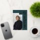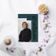 This teal green photo graduation announcement features a clean, modern layout with real gold foil accents. The customizable template allows you to personalize the final two digits of the class year, the graduate’s name, and school, and a main photo for a magazine-style editorial layout. Adjustable letter spacing lets you fully justify the vertical name and school text for a precise, custom fit. The year and “graduate” are printed in genuine gold foil, while the name and school are digitally printed in ivory for crisp contrast. On the back, add an additional 3 photo collage and custom message. A streamlined graduation announcement designed for seniors who prefer a modern look with metallic detail. © Kimbellished, LLC
