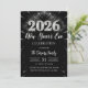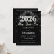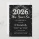 2026 New Year's Eve Party Black & Silver Glitter Invitation