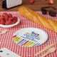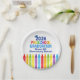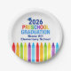 These cute 2026 preschool graduation party plates feature a cool grad cap above colorful writing and a row of crayons in rainbow. Fun Pre-K graduate party decor in fun colors for the last day of elementary school. Congratulations to our PreK student!