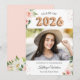 2026 Rose Gold Balloon Floral Photo Graduation Announcement