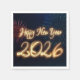 Happy New Year 2026 written with sparkle fireworks displayed on a dark night sky. Shiny bright glowing festive holiday illustration for New Year's and season's greetings.