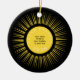 Yellow sun with black circle Total Solar Eclipse personalized with your text - name, date, and place keepsake souvenir tree ornament.