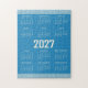 2027 Calendar, Greek Fret, Cosmic Latte on Blue Jigsaw Puzzle
