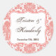 20 - 1.5" Favour Stickers Coral White Damask Lace