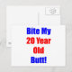 Bite my 20 year old butt! Humourous 20th birthday design for the outspoken 20 year old. If you know an 20 year old with attitude this design is for them. Bite me!