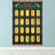 Canvas print which features 20 Ancient Egyptian Gods and Goddesses. These popular Gods and Goddesses of Ancient Egypt appear on a gold cartouche design with their name under each deity. The Gods and goddesses order from top left: Amun, Ra, Osiris, Maat, Horus, Hathor, Bastet, Nut, Sekhmet, Anubis, Isis, Anhur, Khnum, Ptah, Anuket, Sobek, Geb, Thoth, Tefnut and Set.