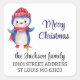 Adorable blue and white penguin wearing a red knit cap and scarf with Merry Christmas greeting decorate these modern square return address envelope seal stickers. Save money with twenty 1.5" or six 3" square stickers for packages and return address labels. Best value... minimum purchase is only one sheet. Easily change the text using the Template provided. If you need more space, use lowercase letters.