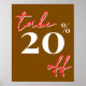 20% Off Sale Sign, Brown Sale Poster