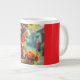 The image of an elderly woman serenly looking at a bouquet of flowers covers this mug.