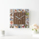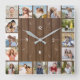 20 Photo Collage Faux Brown Wood Fence Square Wall Clock