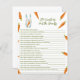 Gender neutral baby shower invitations. Featuring the saying 'A LITTLE BUNNY IS ON THE WAY!', an illustration of a watercolor bunny (rabbit) with carrot in paws, and many orange colour carrots. Matching items available.