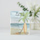 Baby on Board! Baby shower invitation - perfect for a summer baby shower. Beach theme. Watercolor design has a ocean and beach scene with surfboard, palm tree and summer hat.