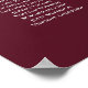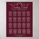 This simple yet elegant wedding seating chart has assignments for 200 guests at 20 tables. The design is sophisticated and chic with gray text on a burgundy background and a vintage floral filigree border. Perfect for making your guests feel welcome at your wedding reception.