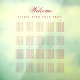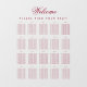 All text is burgundy red. The word Welcome is written in an elegant calligraphic script, the rest in caps. The 20 tables are on 4 rows x 5 columns. It is portrait orientated. Above them and under the word Welcome, there is the message "Please find your seat!".