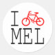 I Cycle Melbourne round stickers. 1½ Inch (sheet of 20). Six 3" round stickers on a sheet. Black background. These stickers are coated paper, so are not really weatherproof. For a weatherproof sticker, please select our rectangular sheet of five stickers.