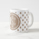 Awesome, unique gift for the winter holidays. A big modern double-framed monogram on this jumbo 20oz coffee mug, covered with a simple gingerbread man pattern. Easily change the initials using the Template provided. Height: 4.5", diameter is 3.9". Microwave and dishwasher safe. See "About This Product" at side for more information.