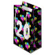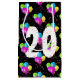 Colourful 20th birthday balloon bouquets with party confetti on black background.