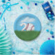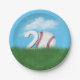 A white baseball in green grass, blue sky, and clouds for a 20th birthday.