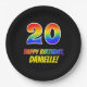 20th Birthday: Bold, Fun, Simple, Rainbow 20 Paper Plate