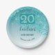 20th Birthday Chic Falling Teal Blue Glitter Paper Plate