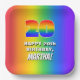 This joyful and fun birthday paper plate design features a large number “20” with a colourful rainbow spectrum inspired gradient pattern, along with the message “HAPPY 20th BIRTHDAY,”, and a personalised name. The background also features a cheerful multicolored rainbow spectrum inspired gradient pattern. Paper plates like this might be used at a birthday party held in celebration of somebody’s 20th birthday. [~Z0000583]
