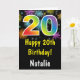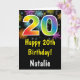 20th Birthday Colourful Rainbow Fireworks Card with personalised name. For further customisation, please click the "Customise it" button and use our design tool to modify this template.