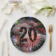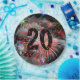 Fireworks in black night sky with clouds and stars for 20th birthday party.