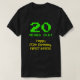 This fun and nerdy shirt design has the message "20 YEARS OLD!", the birthday greeting message "Happy 20th Birthday,", and an editable name. The upper age digits and text have a geeky, pixelated, green, 8-bit graphics style look inspired by that of vintage computer games and vintage video games. The lower greeting message has a nerdy, yellow, classic digital computing inspired look. Shirts like this might be worn by the guests of a birthday party held in celebration of the 20th birthday of somebody who really likes vintage video games or retro computers. [~Z0000455]