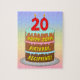 This fun and upbeat birthday themed jigsaw puzzle design features a cartoon-style depiction of a three-tier birthday cake having number-shaped candles on top showing the age “20“, along with the message “HAPPY 20TH BIRTHDAY,”, and a custom recipient name. The background has a multicolored pastel rainbow spectrum inspired gradient pattern. A cheerful, customised birthday puzzle like this might be given to celebrate somebody’s twentieth birthday. [~Z0000621]