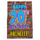 The front of this fun birthday themed gift bag design features the message “HAPPY 20TH BIRTHDAY,” having a colourful, vibrant, graffiti and urban street art inspired look, along with an editable recipient name. The background features a brick wall inspired pattern. A vibrant birthday themed gift bag like this might be used when giving a gift or present in celebration of somebody’s 20th birthday. [~Z0000536]