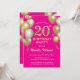 20th Birthday Hot Pink and Gold Glitter Balloons Invitation