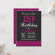 20th Birthday Invitation with Black and Hot Pink Chevron. Chalkboard. Adult Birthday. Man or Women Bday Invite. For further customisation, please click the "Customise it" button and use our design tool to modify this template.
