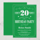20th Birthday Invitation Green and White