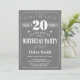20th Birthday Invitation Grey and White