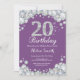 20th Birthday Invitation Purple and Silver Diamond