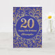 20th Birthday Navy Blue and Gold Floral Pattern Card