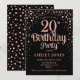 20th Birthday Party - Black & Rose Gold Invitation